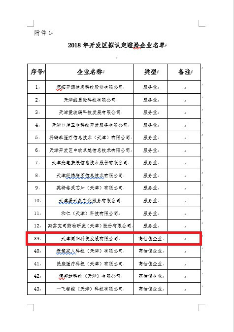 更新時(shí)間: 點(diǎn)擊:18379 所屬欄目:公司新聞 Update Time: Hits:18379 Belong Column:News日前,天津經(jīng)濟(jì)技術(shù)開發(fā)區(qū)根據(jù)《天津經(jīng)濟(jì)技術(shù)開發(fā)區(qū)促進(jìn)科技重點(diǎn)企業(yè)發(fā)展的實(shí)施辦法》(津開發(fā)[2017]45號(hào))有關(guān)規(guī)定,經(jīng)企業(yè)申報(bào)、專家評(píng)審,認(rèn)定天津同陽科技發(fā)展有限公司等企業(yè)為瞪羚企業(yè)。